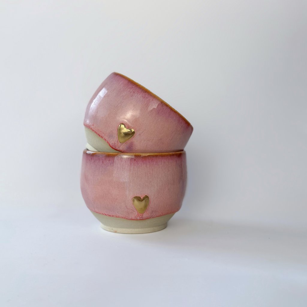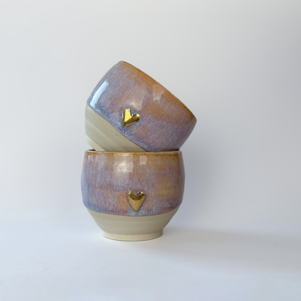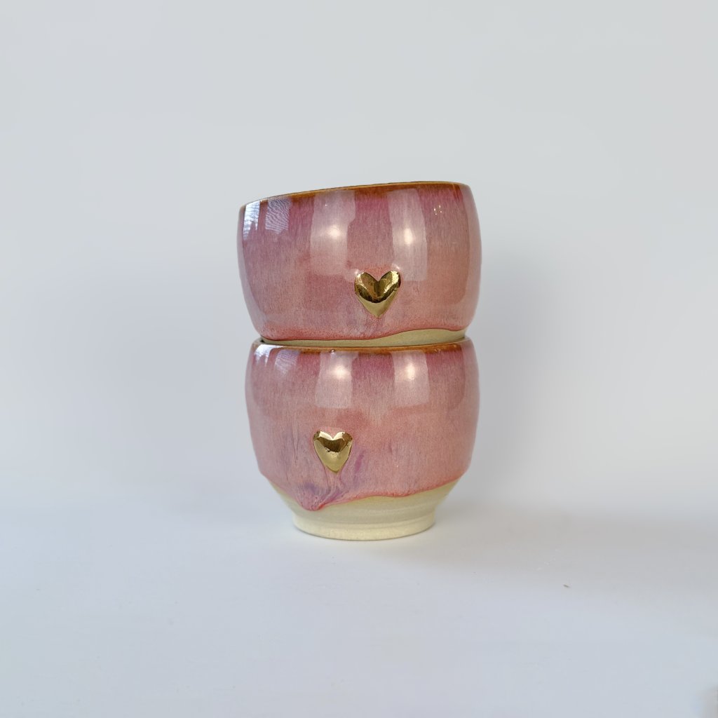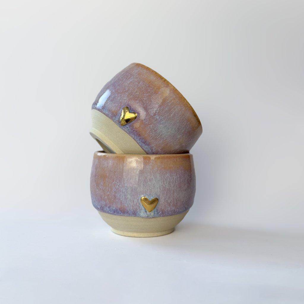 - Tyto hrníčky jsou vytočeny z pigmentové kameniny.